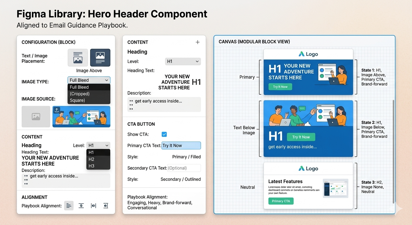 Modular, build‑your‑own emails via a custom Figma library